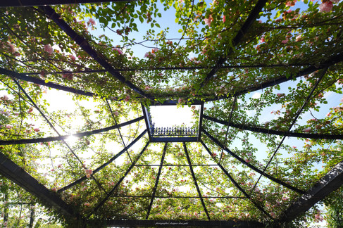 チケットを購入し、お庭にまっすぐ進むと、バラのトンネルが出迎えてくれました。